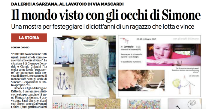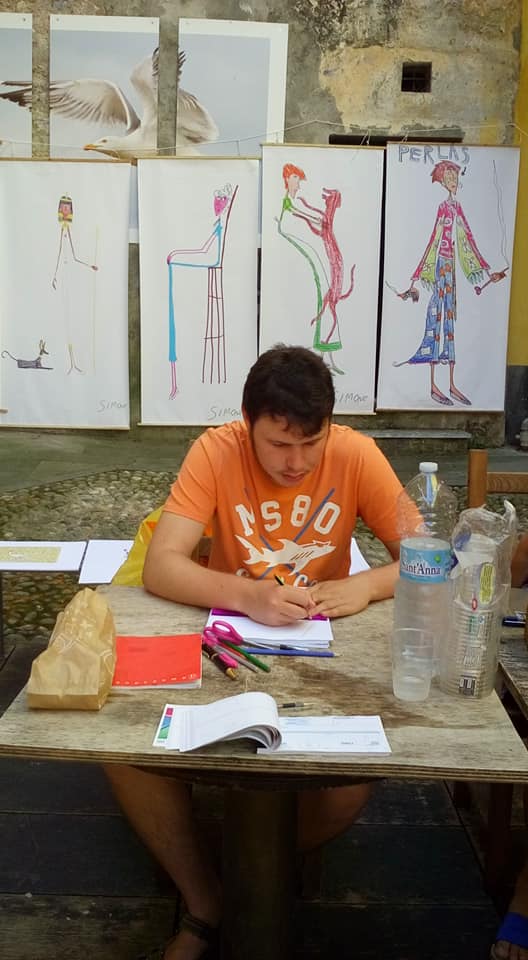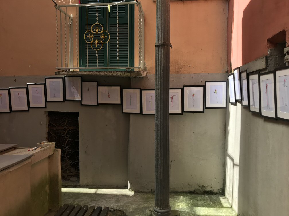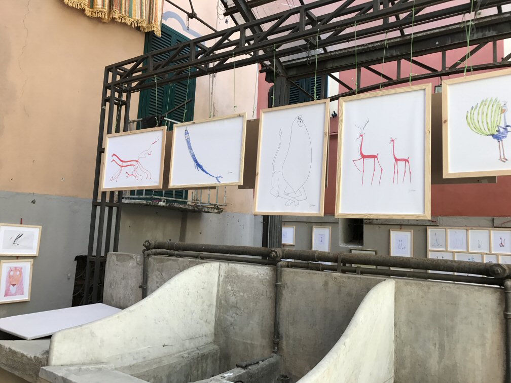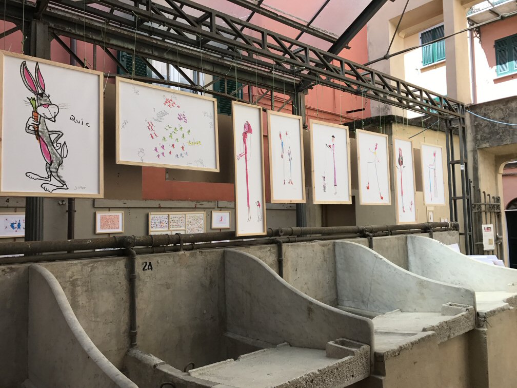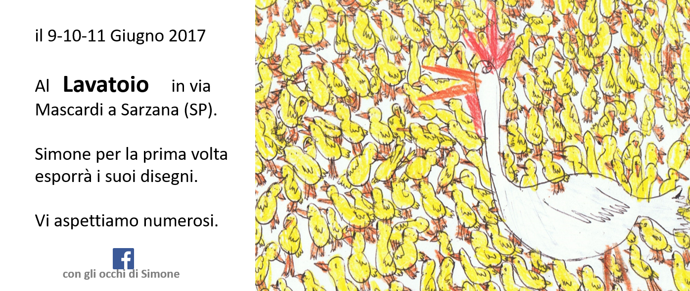 Dopo la mostra al Lavatoio ci contatta il responsabile di Art Primitive Gallery (Marco Abbagnara) che vorrebbe esporre i disegni di Simone alla libreria "il molino dei libri" di Sarzana.