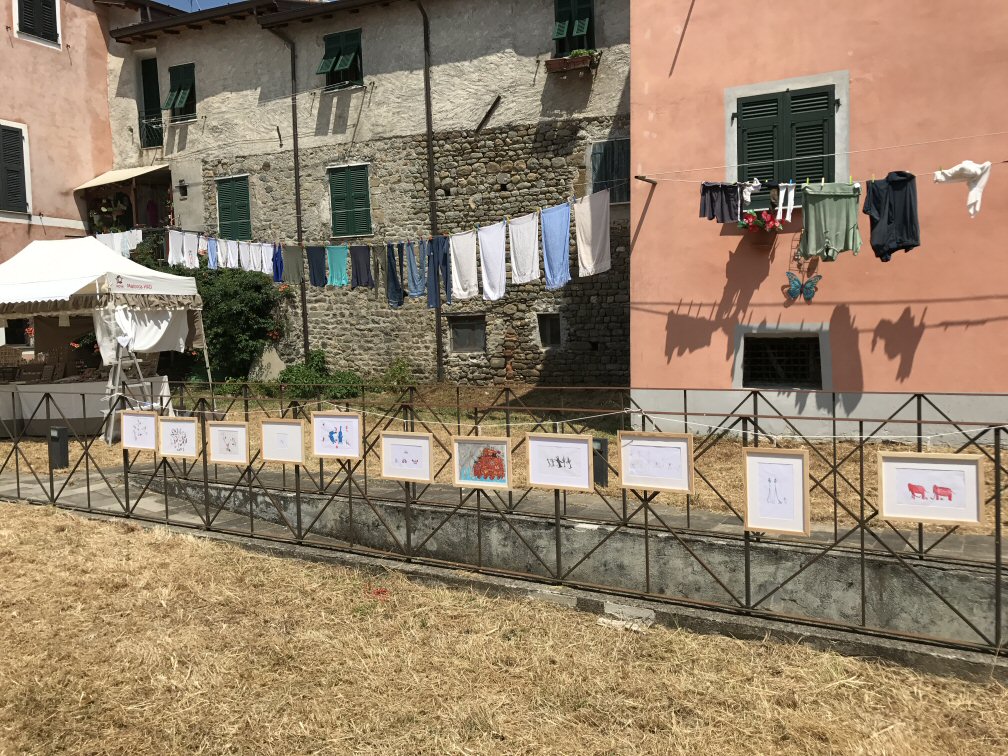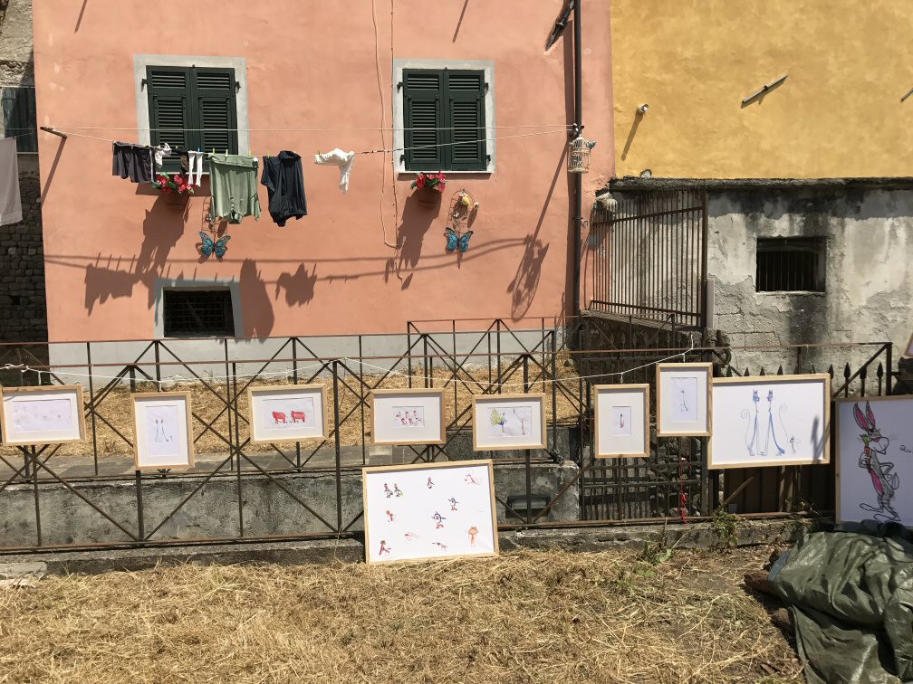Domenica sera appena finita la mostra in Piazza Mottino, trasferiamo direttamente i disegni più belli alla Borgata Marinara a pochi metri di distanza.