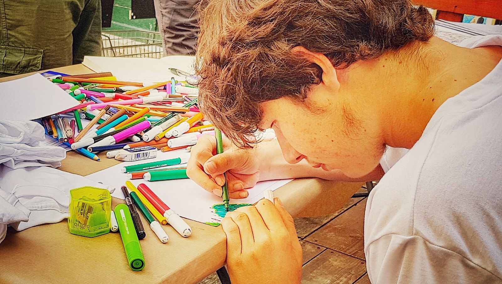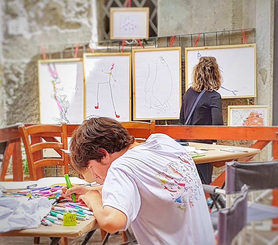 Simone intrattiene i presenti con una produzione continua di bellissimi disegni fatti durante la mostra.