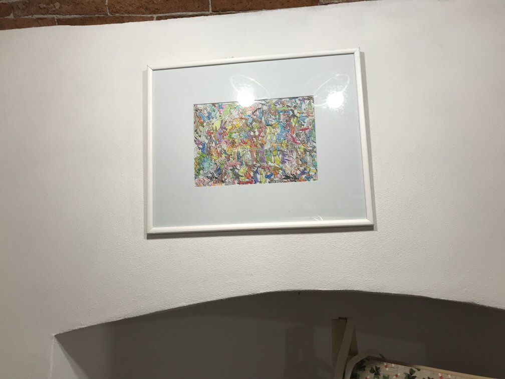 La cosa più difficile è stata "decidere di fare una mostra". Era ormai dagli inizi del 2016 che guardavamo i disegni di Simone con occhi diversi, rendendoci conto che non erano più semplici schizzi infantili, ma che dietro si celava uno stile ben preciso e i disegni erano veramente belli.