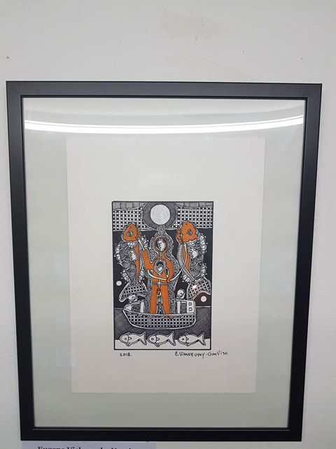 Portiamo inizialmente i dodici quadri più belli, e poi a Febbraio organizziamo un evento per mostrare tutta la produzione degli ultimi anni. Prepariamo magliette, copie dei disegni, portiamo anche i raccoglitori con gli ultimi disegni selezionati...ma purtroppo l'unica nevicata dell'anno rovina l'evento.
