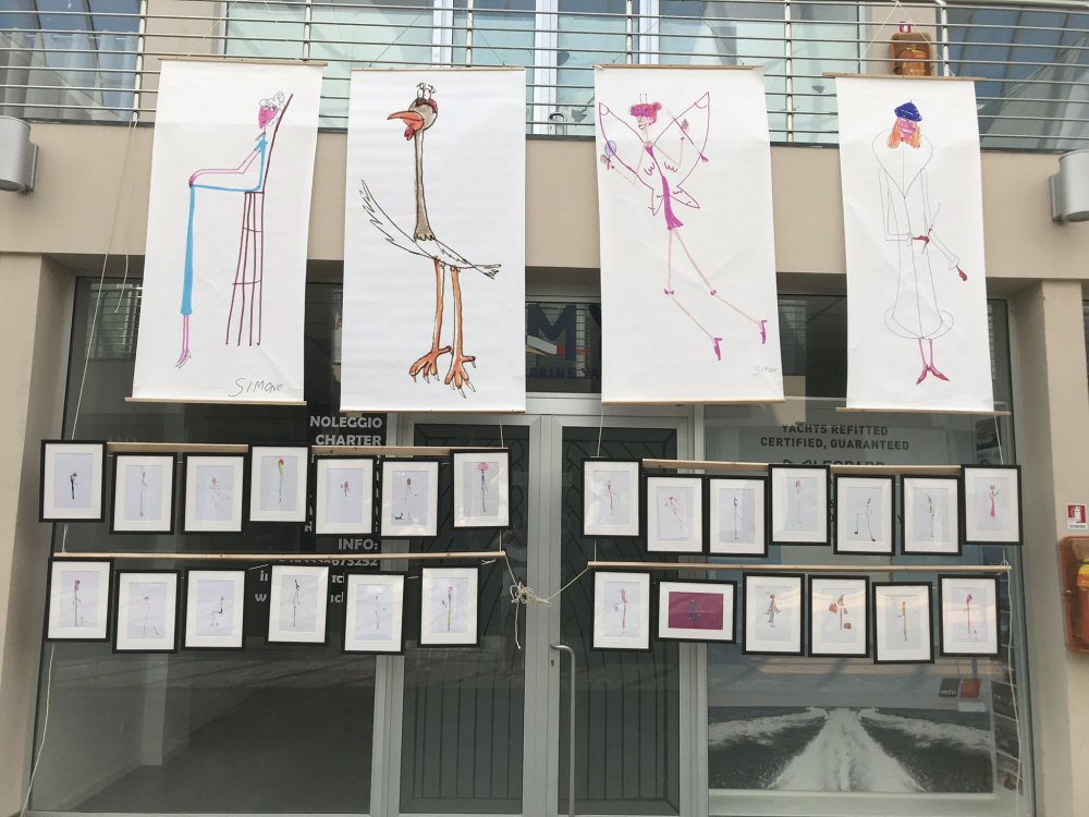 Porto Mirabello è una bellissima posizione e la galleria molto ampia ha permesso di esporre moltissimi disegni nel migliore dei modi.